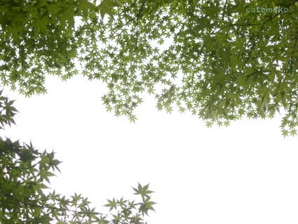 紅葉の時期の楓も言うまでもなく魅力的です。でも、このときの楓は青々とした葉が日の光に透けて重なり、繊細なレースのようでした。